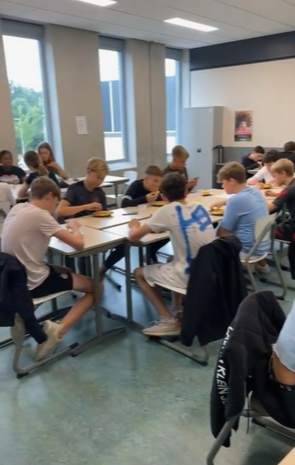 Na het lasergamen hebben we samen op school friet met een mini-snacks gegeten.